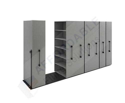7 Bay Bulk Filing System including 35 shelves 2270mm(H) x 1100mm(W) x 3320mm(L). Each bay is 360mm Deep. The Bulk Filer has a 800mm walk in space